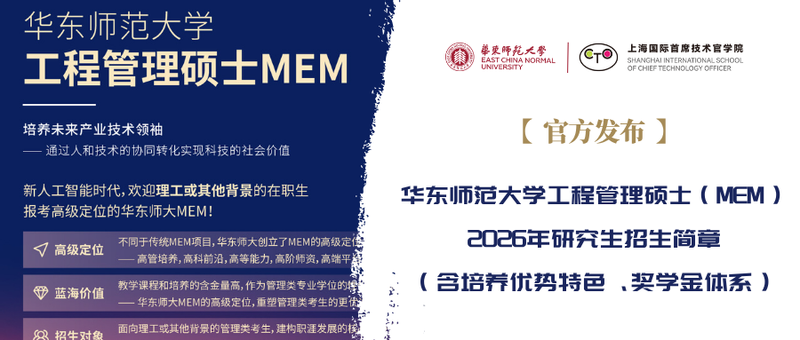 全新精英MEM!直接响应国家战略培养面向未来的首席技术官!华东师大工程管理硕士CTO精英班升级为elite MEM(2025级)