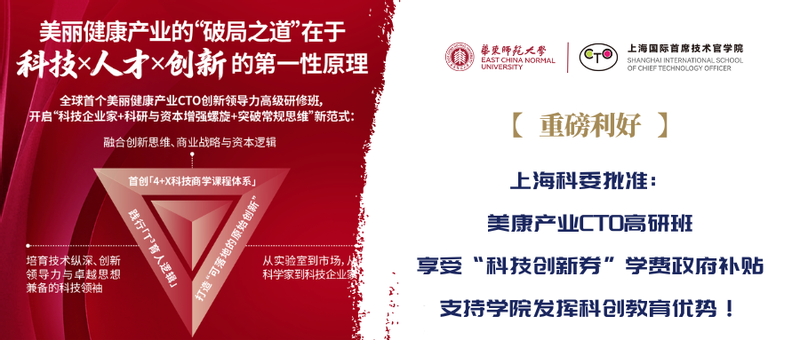 限额席位!全国首个美丽健康产业CTO创新领导力高级研修班(四期)即将启动,邀您加入高端产业生态联盟!