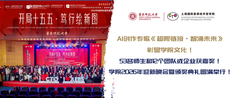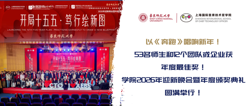 行至年终,向新而行。12月27日,华东师范大学上海国际首席技术官学院与华东师大亚欧商学院(科技商学联合体)2026年迎新晚会暨年度颁奖典礼在普陀校区科学会堂报告厅隆重举行。近300位来自全球各个国家与地区的两院学子齐聚一堂,共同庆祝这个特别的夜晚。法国里昂商学院亚洲校区校长辛文龙博士,华东师大党委学生(研究生)工作部部长李彦垒、国际教育中心副主任金丽君,上海市欧美同学会普陀分会会长朱宇晖,建行上海普陀支行行长刘正,MEM学术导师、国家级人才、华东师大化学与分子工程学院教授姜雪峰等领导和嘉宾莅临现场。本次活动由华东师范大学2025级MEM首席技术官精英班(CTO)刘珈汝、2025级MEM首席智能